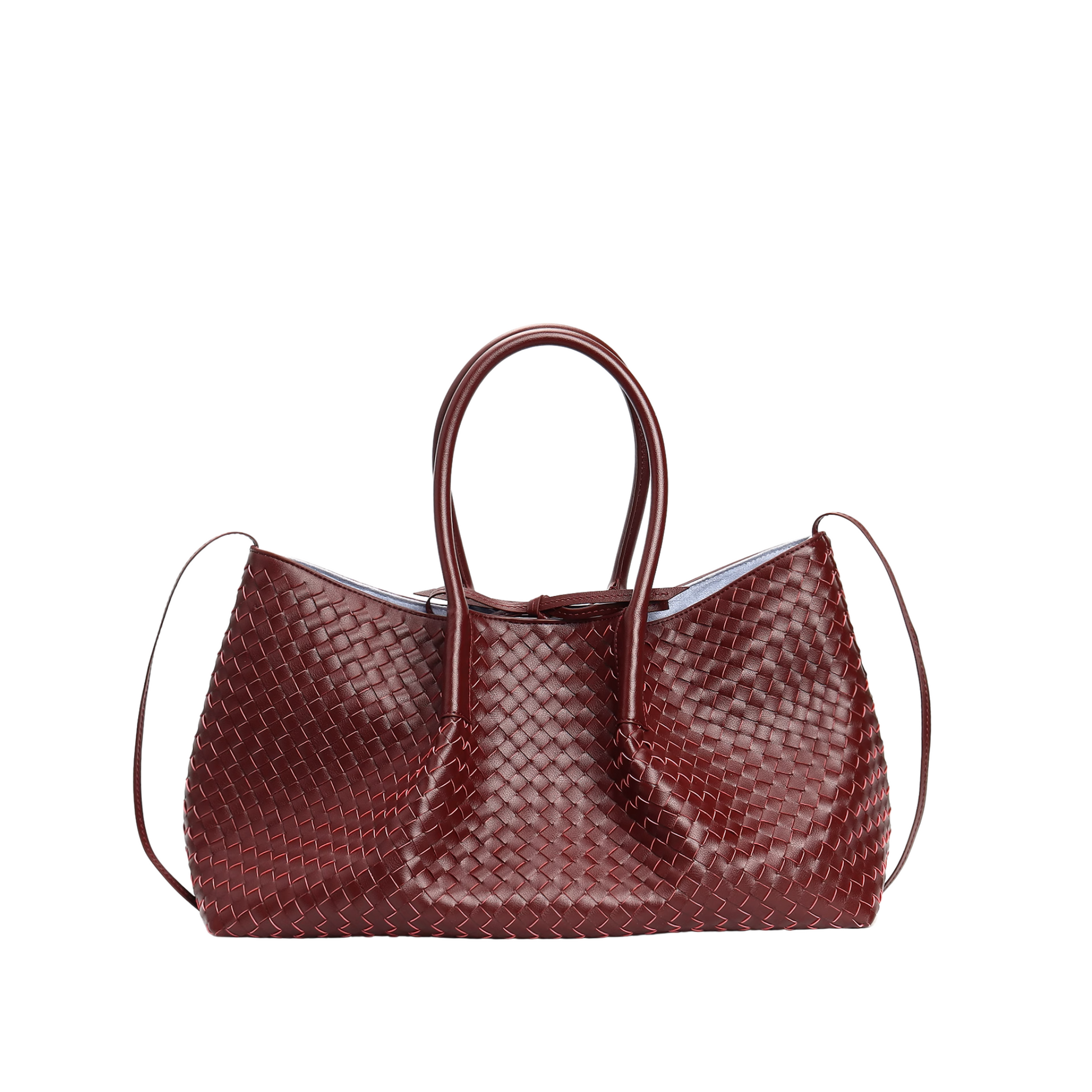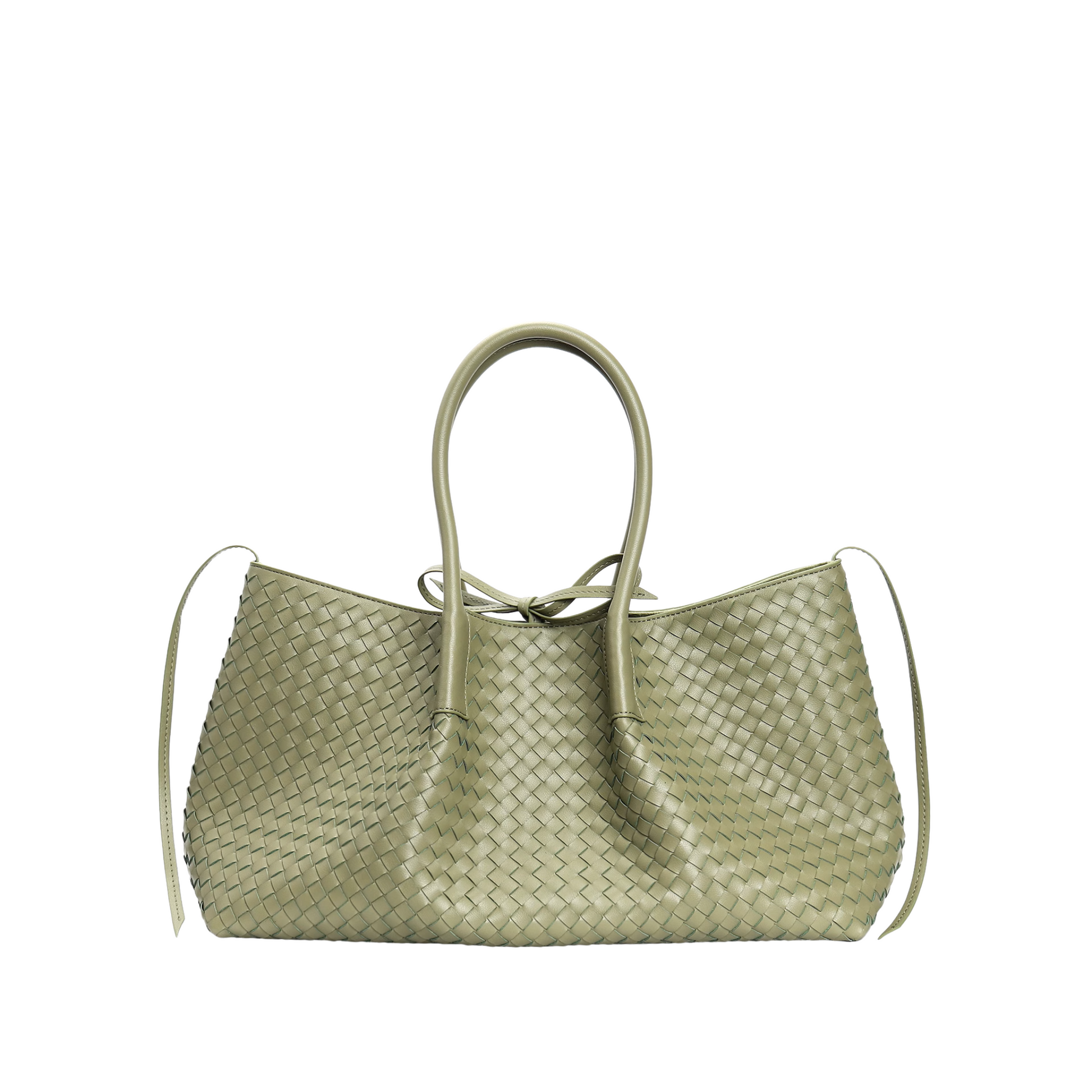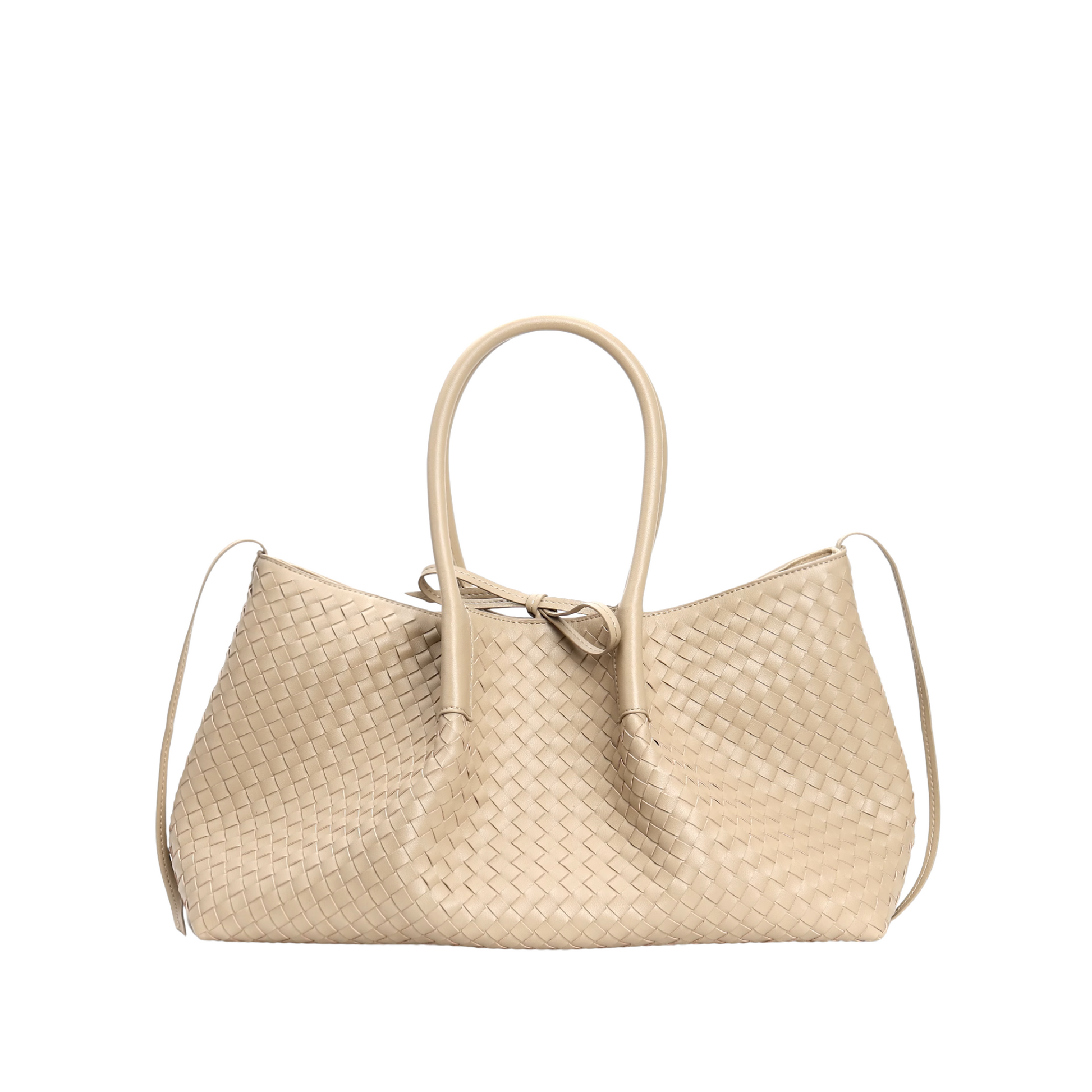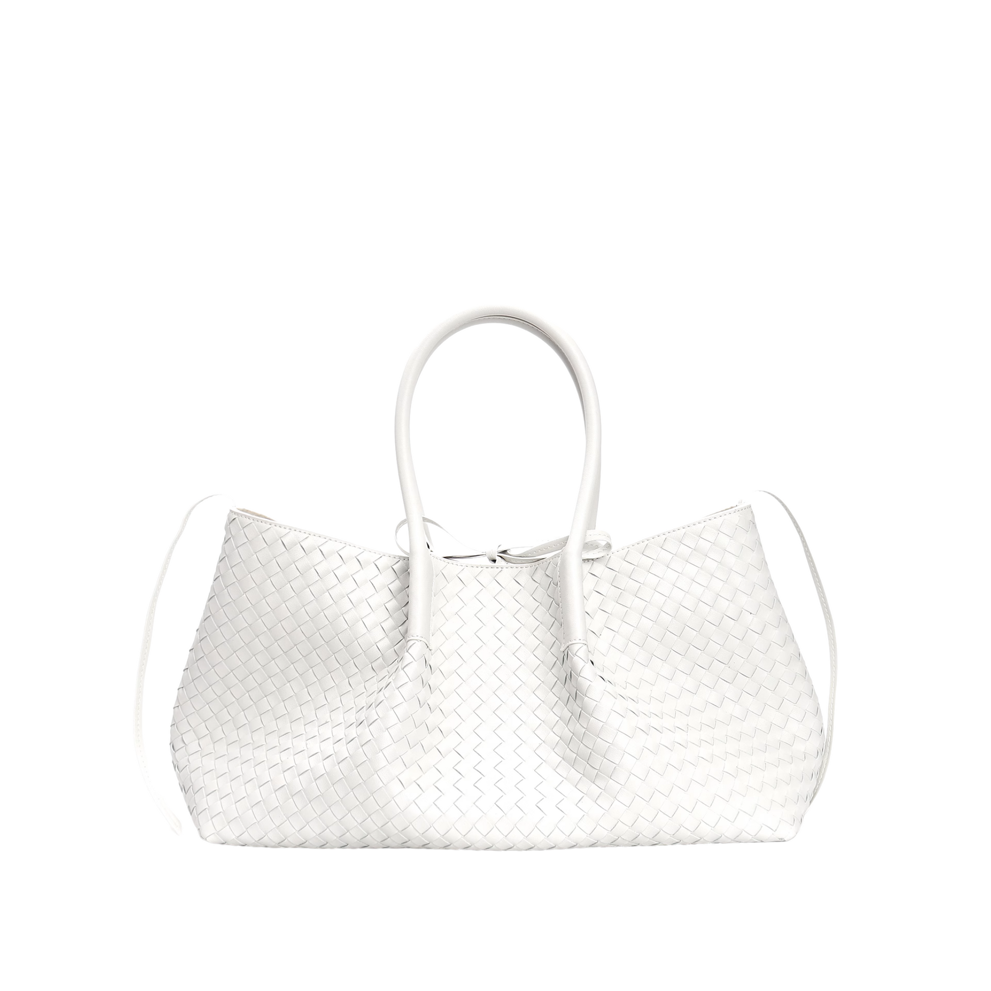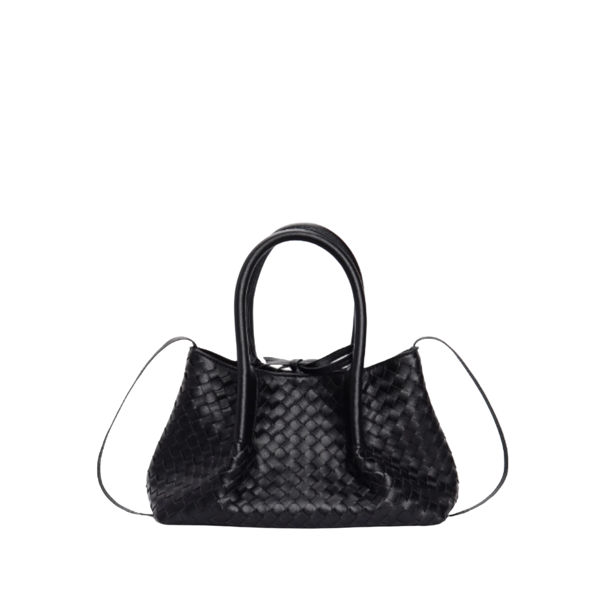 The Astrid features a structured, Intrecciato-inspired exterior, meticulously crafted to give nod to classic artisanal weaving. This architectural tote showcases dual top handles and an optional shoulder strap—ready for both polished arm carry and hands-free days. A refined tie-fasten top keeps the interior effortlessly chic, which opens to a spacious, fully-lined compartment complete with a detachable zip interior pouch for organization. With sleek matte hardware, a reinforced base for shape retention, and an elegant silhouette, this bag blends subtle craftsmanship with modern utility.