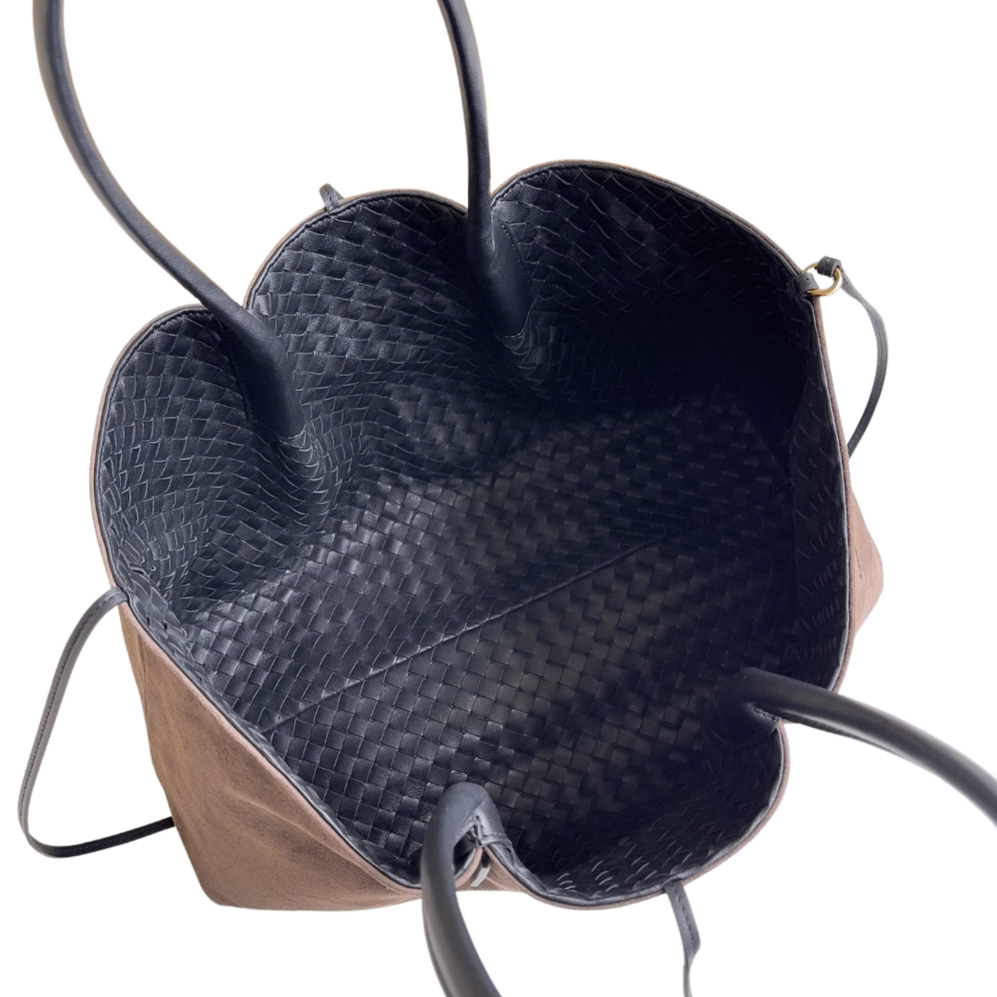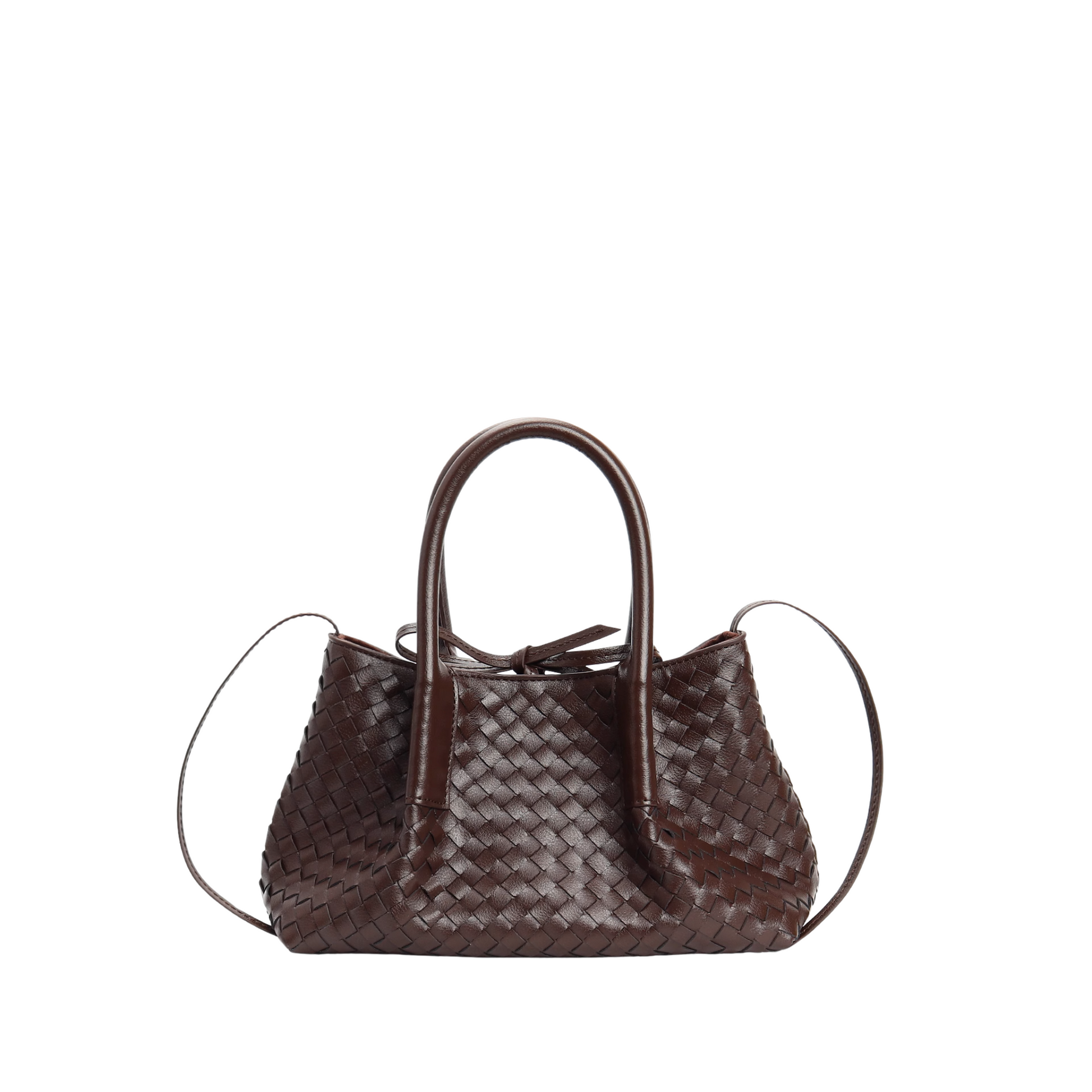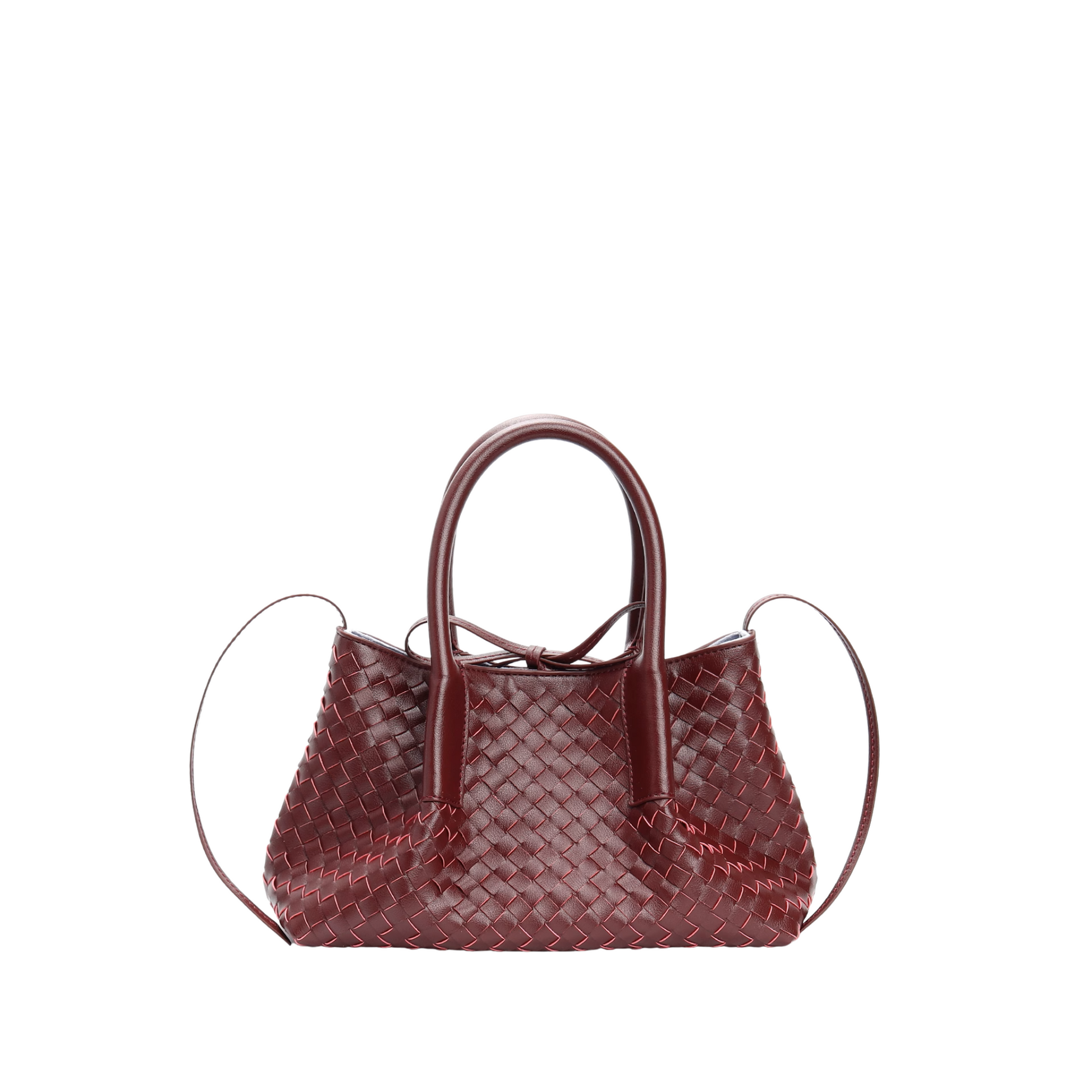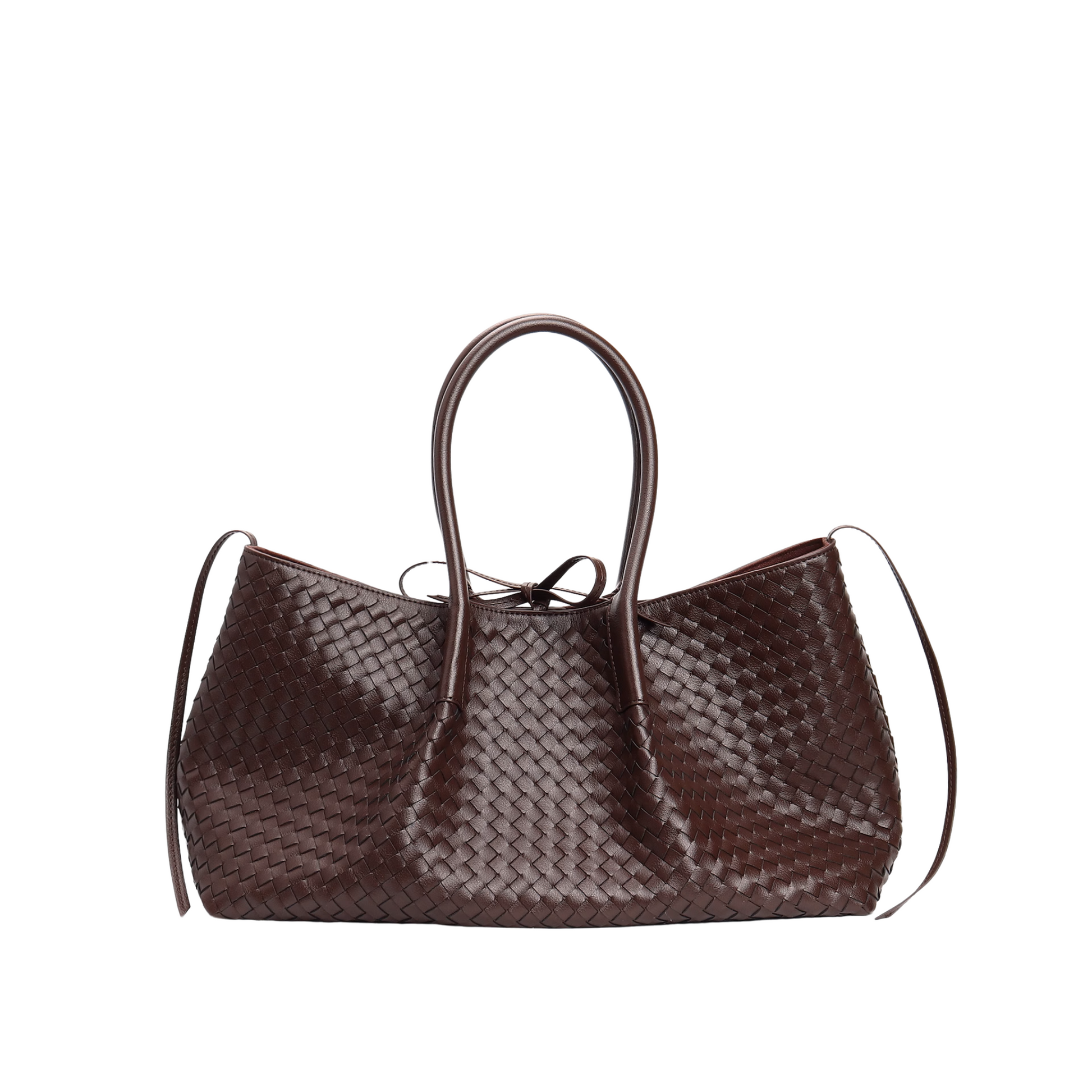 The Astrid features a structured, Intrecciato-inspired exterior, meticulously crafted to give nod to classic artisanal weaving. This architectural tote showcases dual top handles and an optional shoulder strap—ready for both polished arm carry and hands-free days. A refined tie-fasten top keeps the interior effortlessly chic, which opens to a spacious, fully-lined compartment complete with a detachable zip interior pouch for organization. With sleek matte hardware, a reinforced base for shape retention, and an elegant silhouette, this bag blends subtle craftsmanship with modern utility.