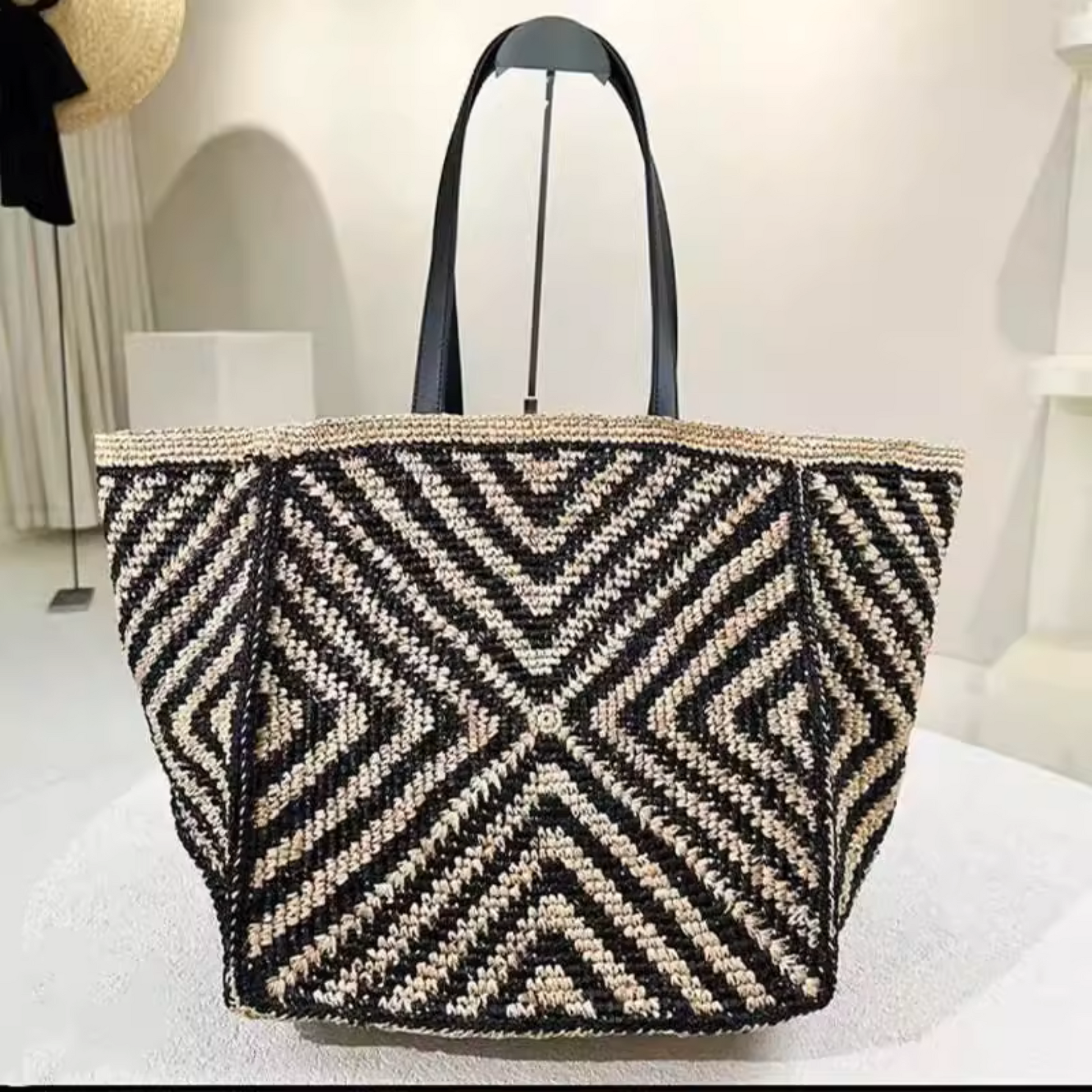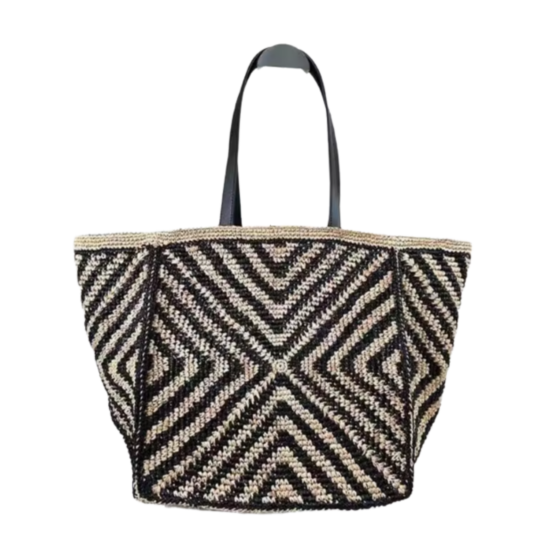 Crafted from handwoven natural raffia sourced from skilled artisans, The Isla offers breathable texture and coastal appeal. Smooth vegan leather handles and trim add a sleek contrast, while the flat base keeps the bag grounded. It's a stylish, versatile tote that captures the essence of summer sophistication.