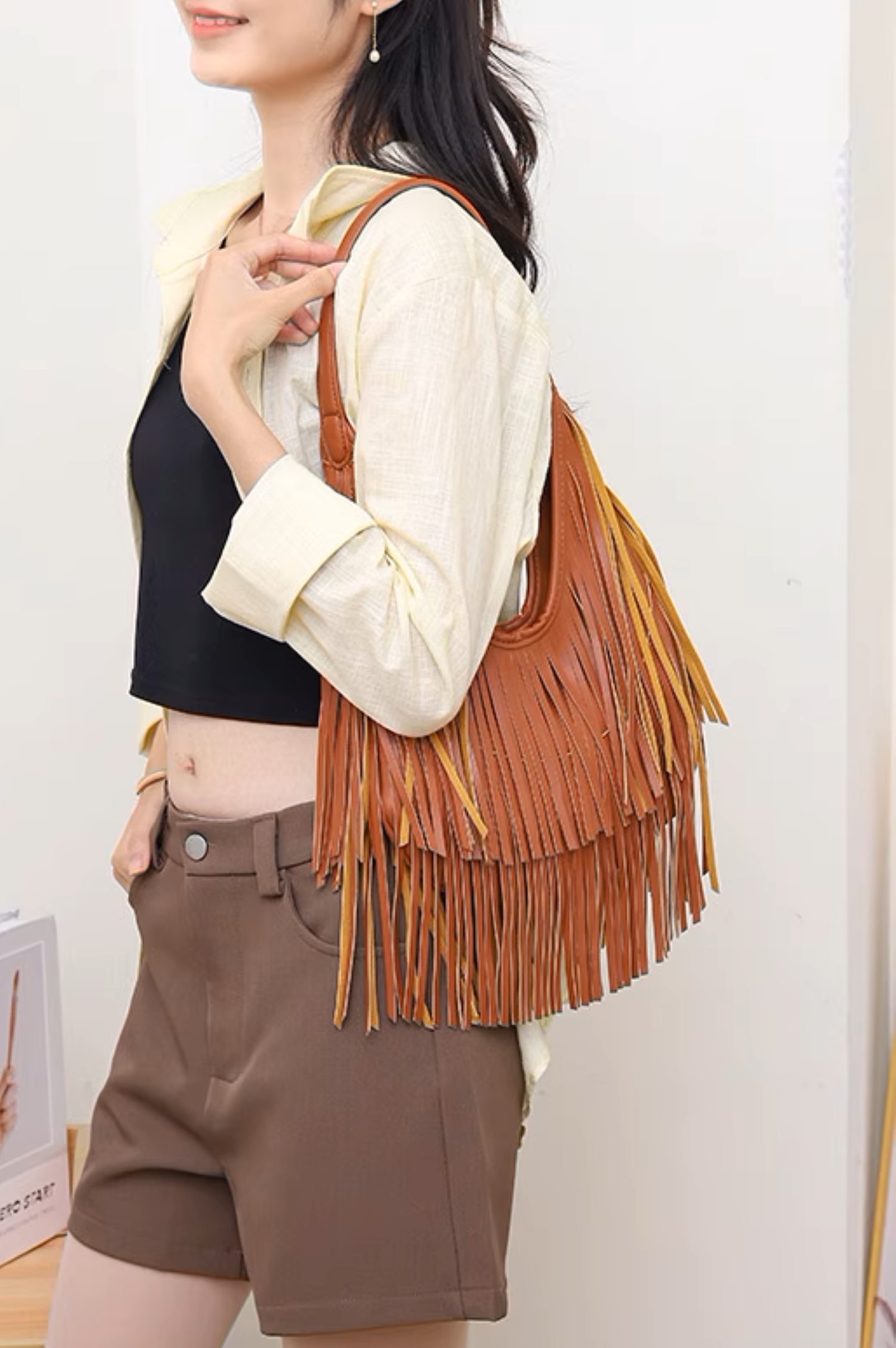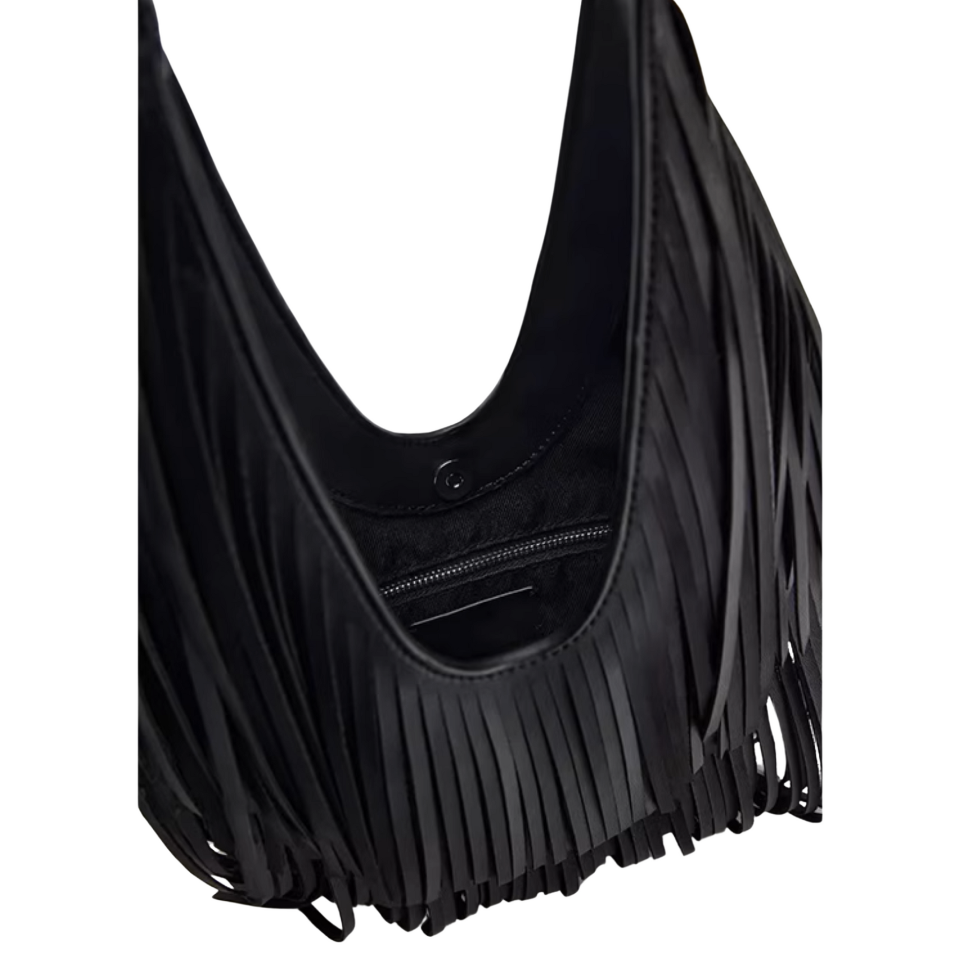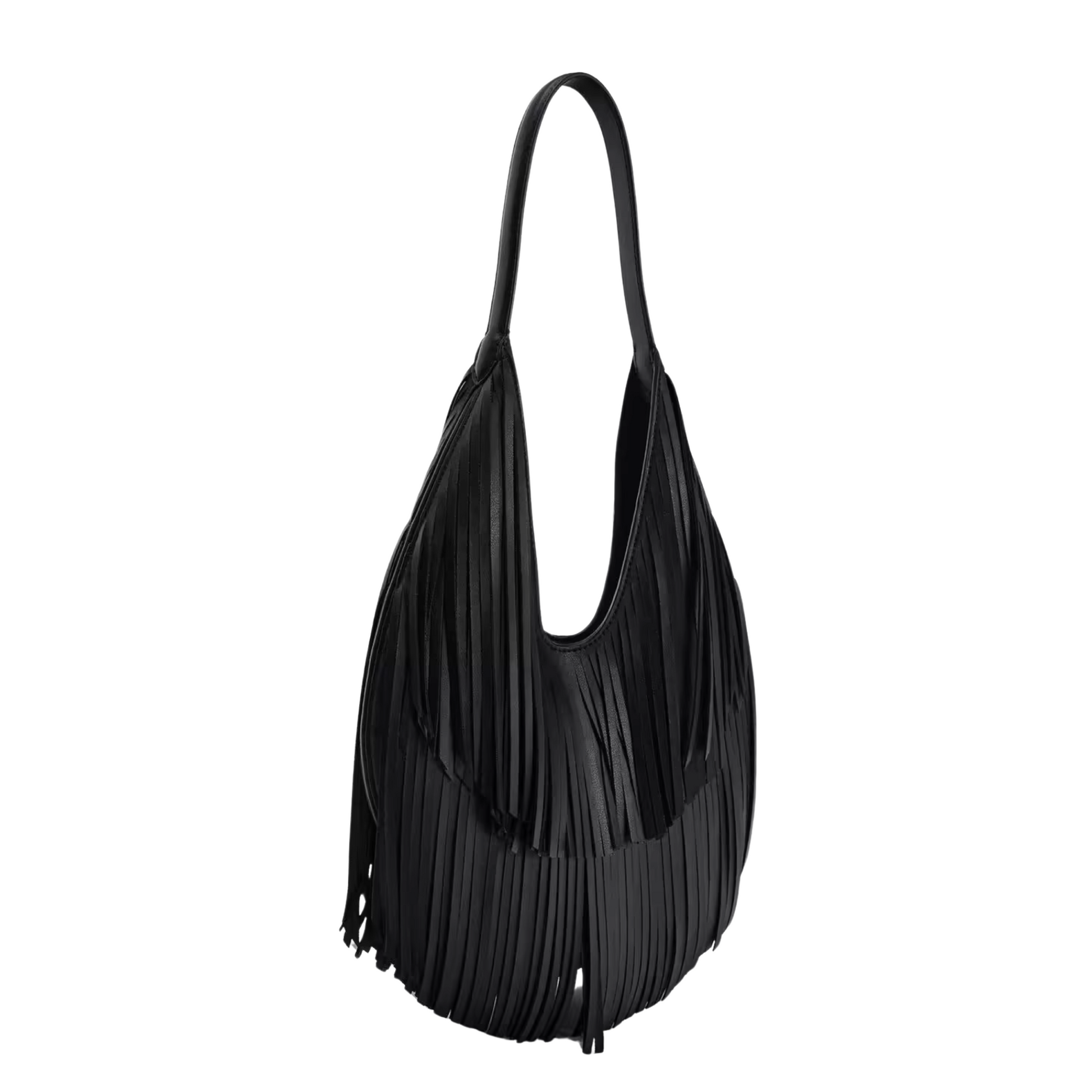The Juliette showcases four swaying layers of soft vegan leather fringe draped over a gently curved, shoulder-ready silhouette. Its zip-top closure keeps your essentials secure, while a fully lined interior provides lots of room for organized storage . Finished with a refined shoulder strap, this bag brings boho-chic aesthetics into elevated, everyday elegance.