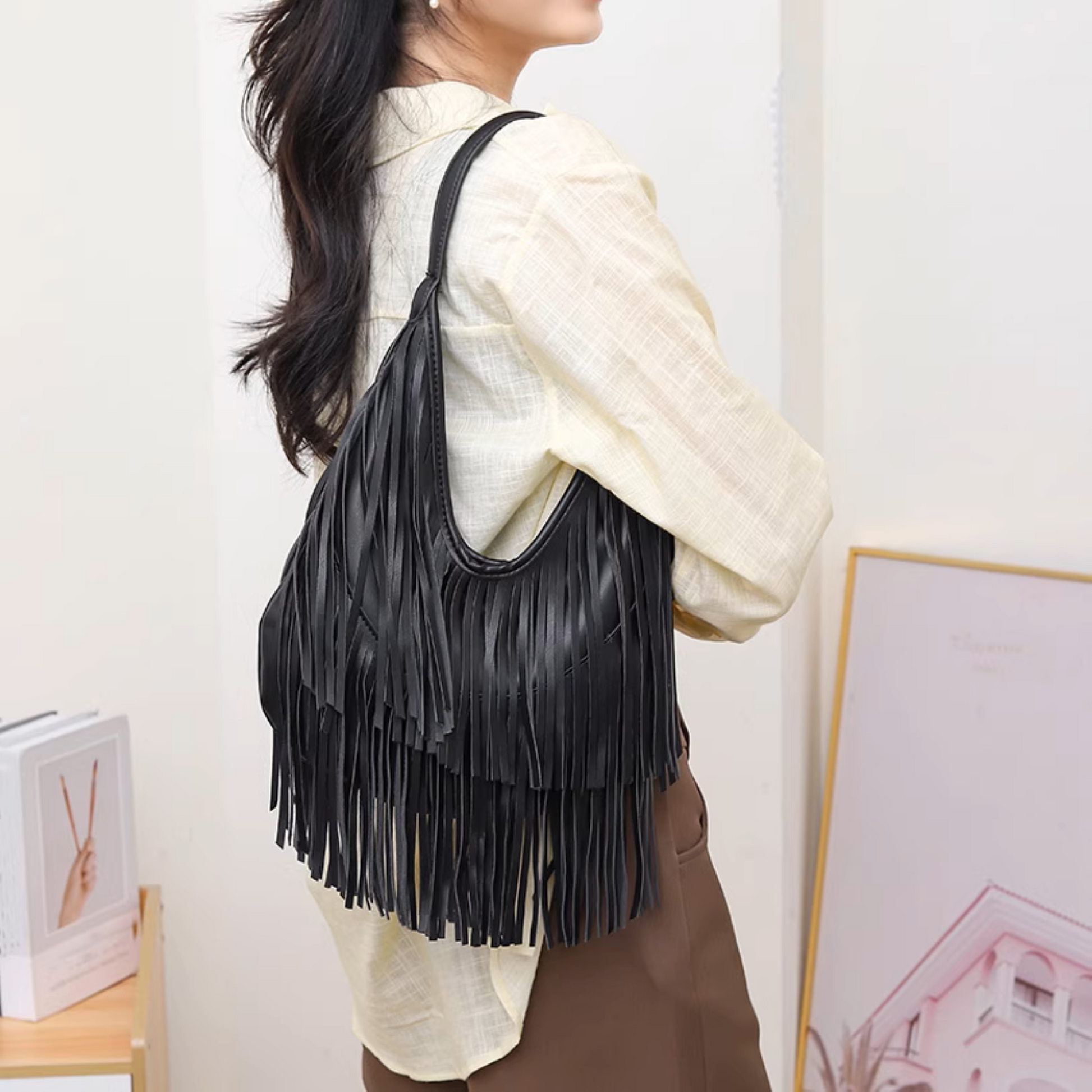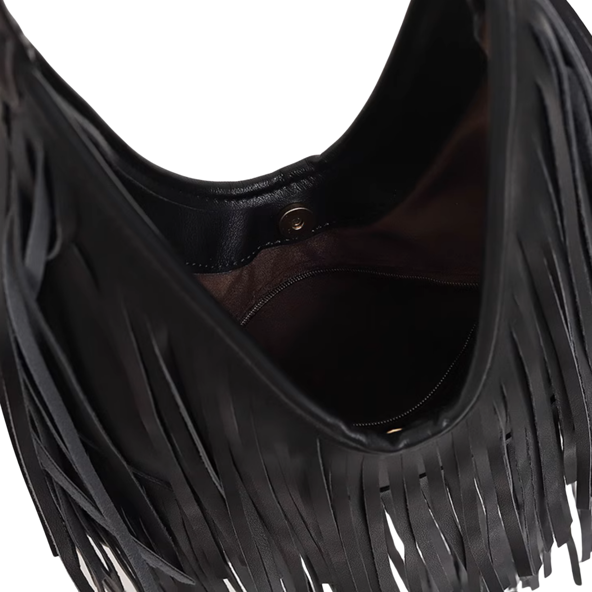 The Juliette is a celebration of movement and mood, layered with cascading fringe that dances with every step. Crafted to blend statement-making style with everyday wearability, its softly structured body and polished details ensure it looks just as at home at a weekend brunch as it does on a night out.