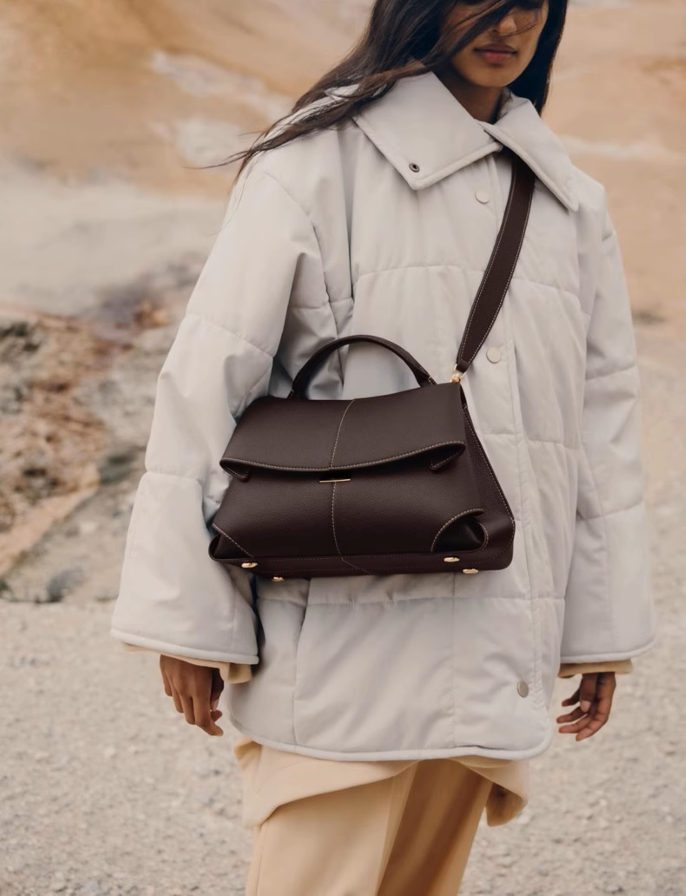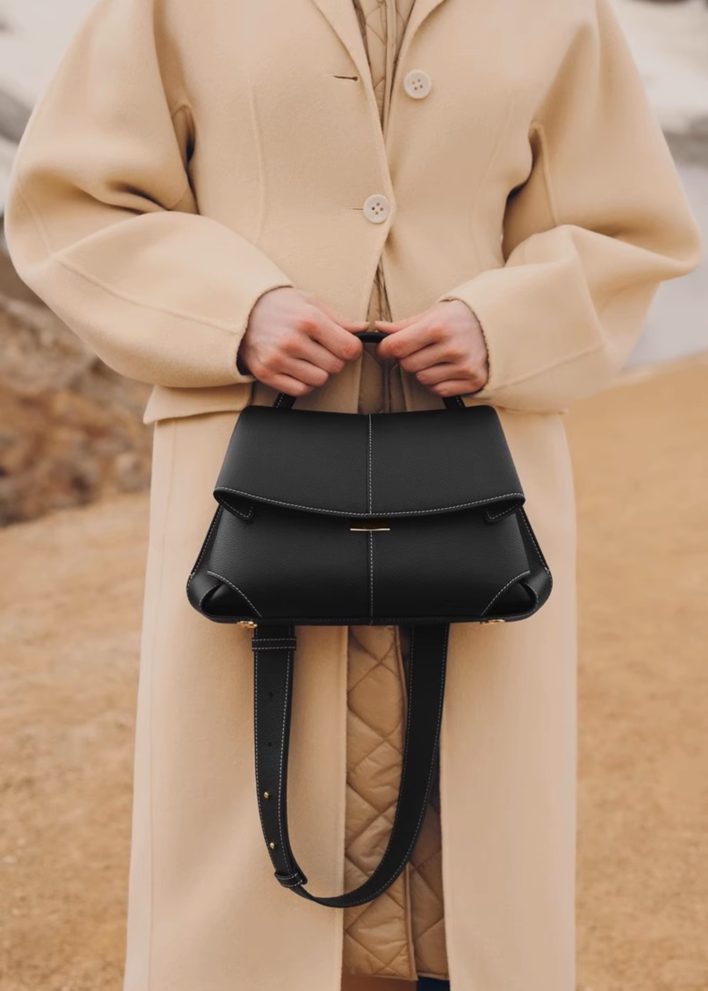 The Noelle is a masterclass in minimalist innovation, offering a compact yet roomily organized silhouette with subtle origami-inspired folds. Designed to feel sculptural and sleek, it's perfect for the woman who values both artistry and everyday ease—an understated statement that carries everything you need without fuss.