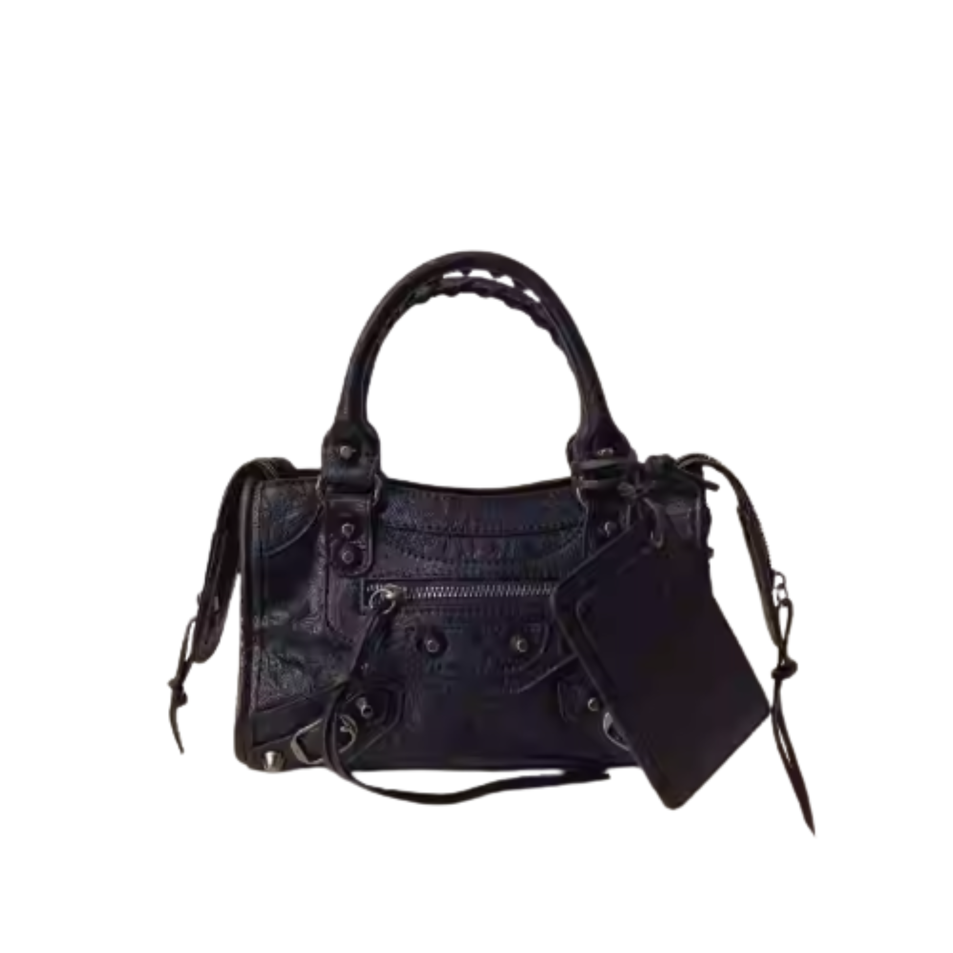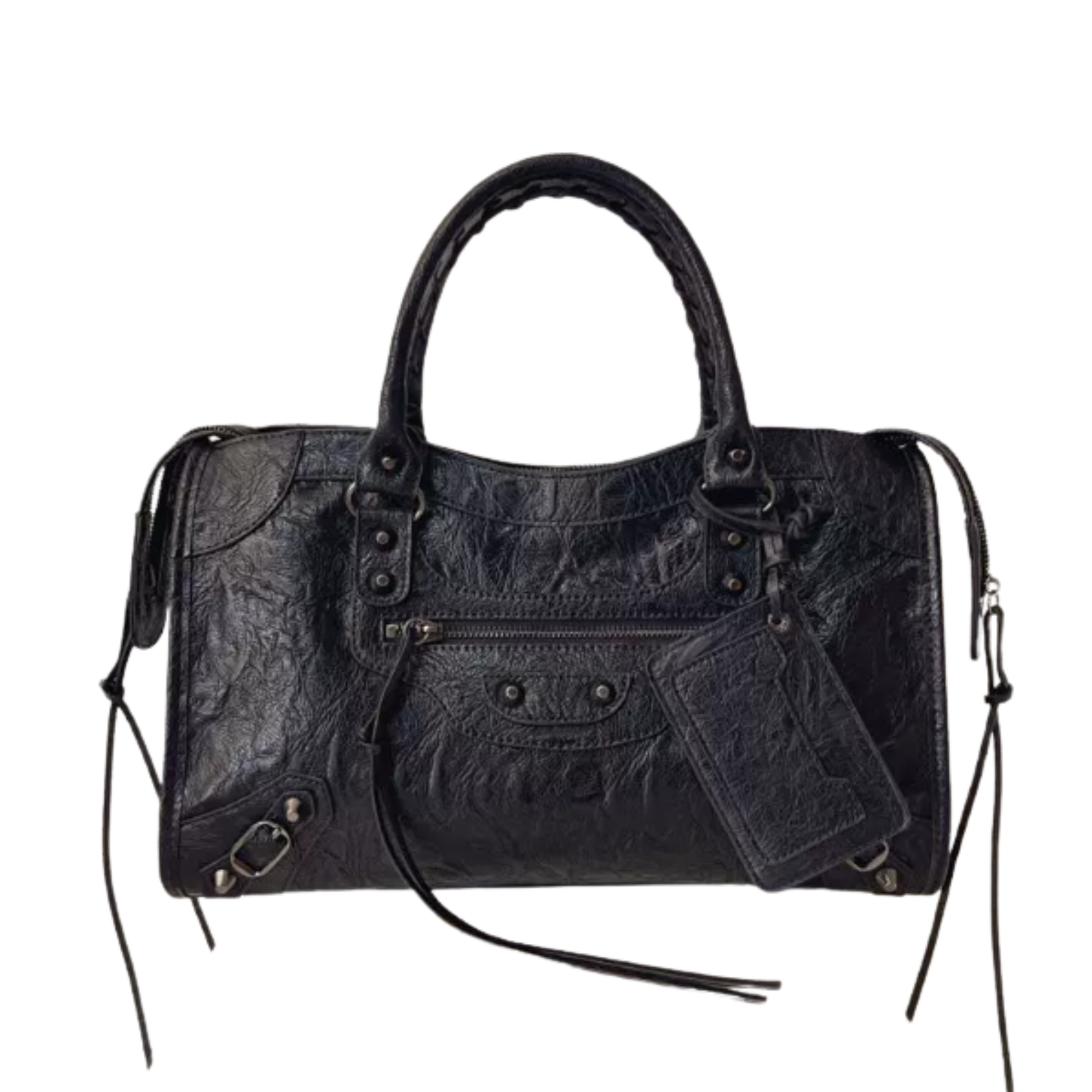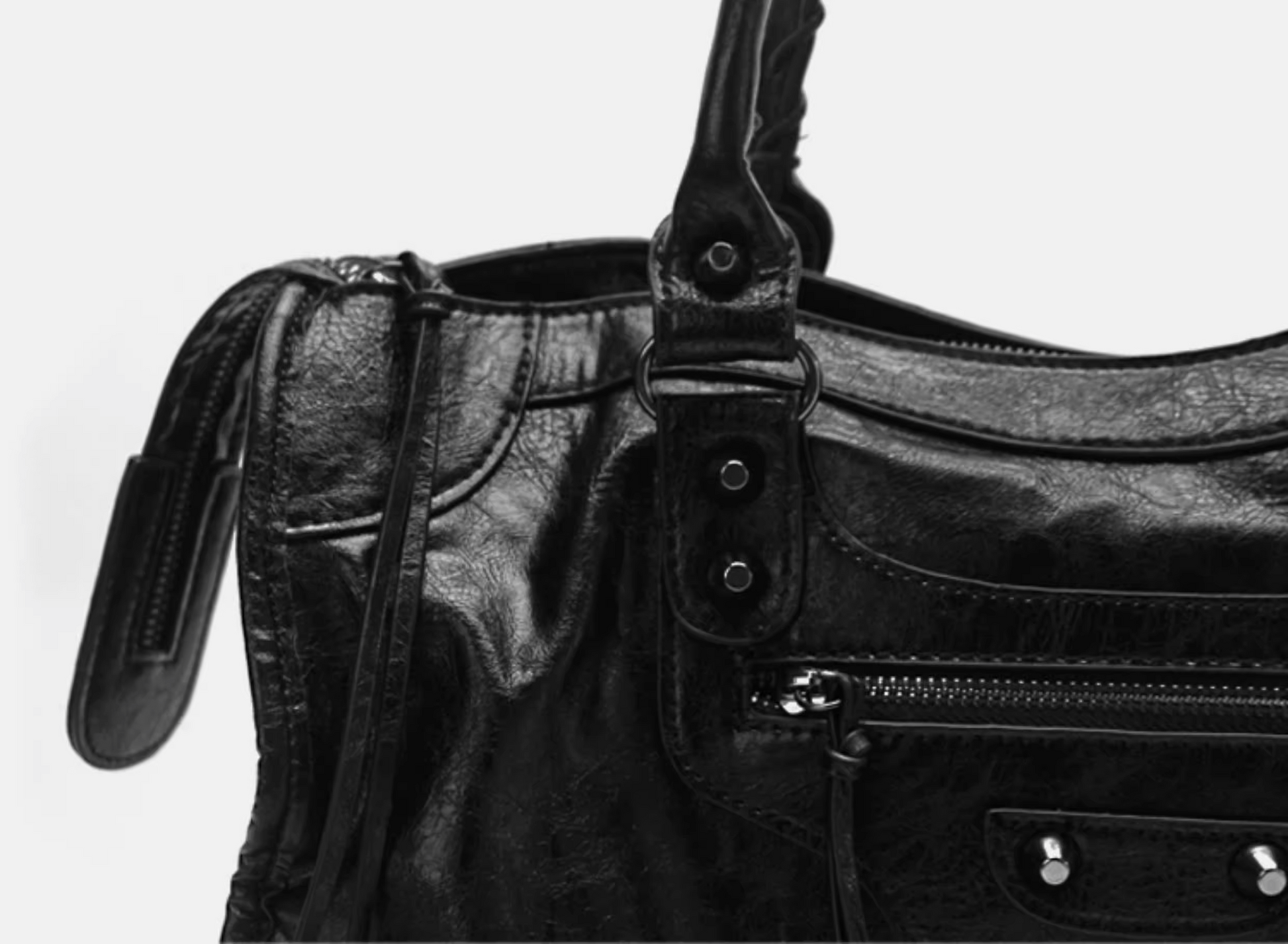 Antique-inspired buckles, tonal studs, and brushed metal zippers give The Renée its distinctive city-chic energy. The subtle shine catches the light without overpowering the design, striking a perfect blend of understated glam and everyday wearability. These custom-finished accents elevate the satchel’s personality while reinforcing its durable construction.